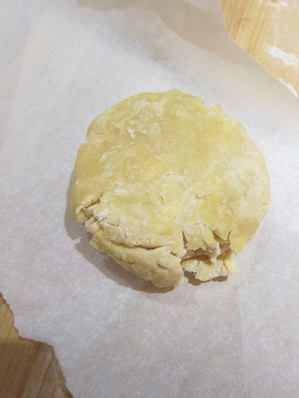 Back at the house, I put my six year old theatre companion to bed and finally—finally—embraced the undertaking of my pastry-wrapped salmon. I formed the puff pastry dough late Friday night using the last 2 cups of flour in the house. I shaped three separate balls of dough, each mass about 200 gram, ivory in color, marbly in texture, and a tad too dry. I had enough, just enough, to serve my company the next day but remained decidedly short the necessary dough to test and tweak a recipe. I ignored the crumbly frissions, push the dough flat to form three hockey-puck rounds, and chilled them in the refrigerator overnight.