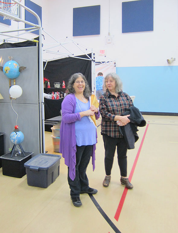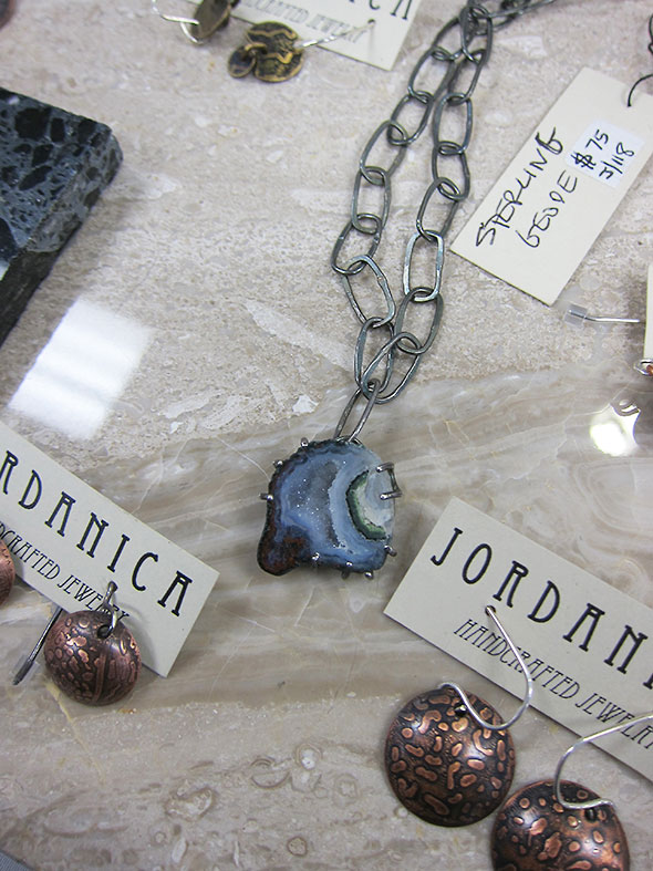 I got a sneak peak as area artists set up their booth in the early morning. I entered the gym at 8:30pm to a great bustle. Setup began at 7am, and I could see the handwork that the artists had already put into setting the stage for the day’s shoppers. Surfaces of wood, velvet, wire mesh, and carpet provided a medley of textured foundations for the star attractions. Light played a surprising supporting role and added depth and clarity to many of the displays. My favorite was Geno Luketic’s booth with its windowed displays highlighting the reliefs and colorations of his wood fired clay pieces