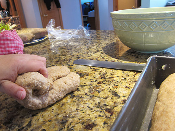 Now I could again leave the shaped loaves to rise. We left the house to enjoy the sunny snow day and returned several hours later. It was good to know that according to the recipe we were under no specific time constraints. We could return in two hours or eight for the yeast to prove its stuff.