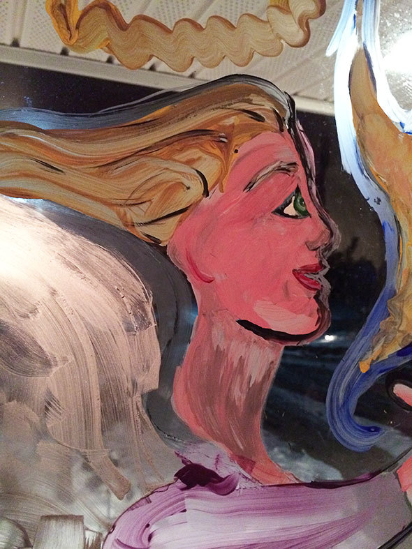 As the mural literally took wing, I was not allowed to progress without another’s full engagement. The work quickly became a collaboration—all the better for it I humbly admit—with my daughter giving a rich and intricate texture to the angel’s silver wings and her plum-colored gossamer gown.