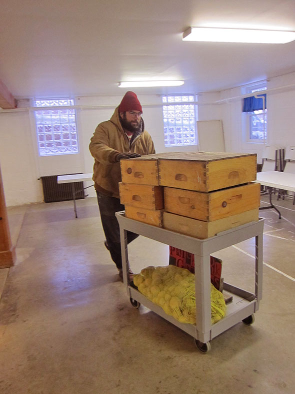 Today is my day to work at the Yellow Springs Winter Market. Hosting the market at the Yellow Springs United Methodist Church, 202 S Winter St, is the work of five families: the Reynolds, the Clarks, Pastor Gordon Smith and his wife Bev Tanamachi, Wally Rehm, and myself. Roger Reynolds is the ship’s captain, but he and his wife Macey are taking some well-deserved shore leave this week. Wally and I usually close so last night we set our alarms and promise to arrive by 8:15am.