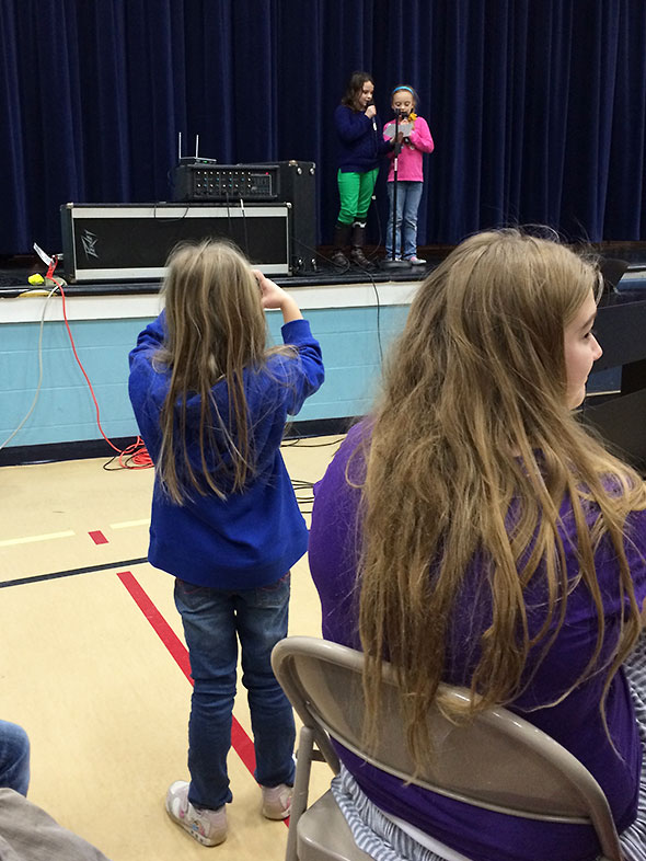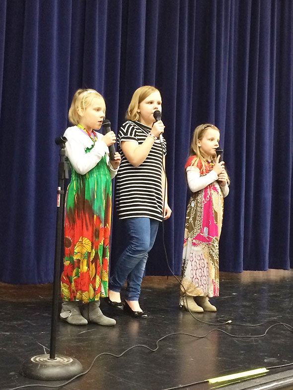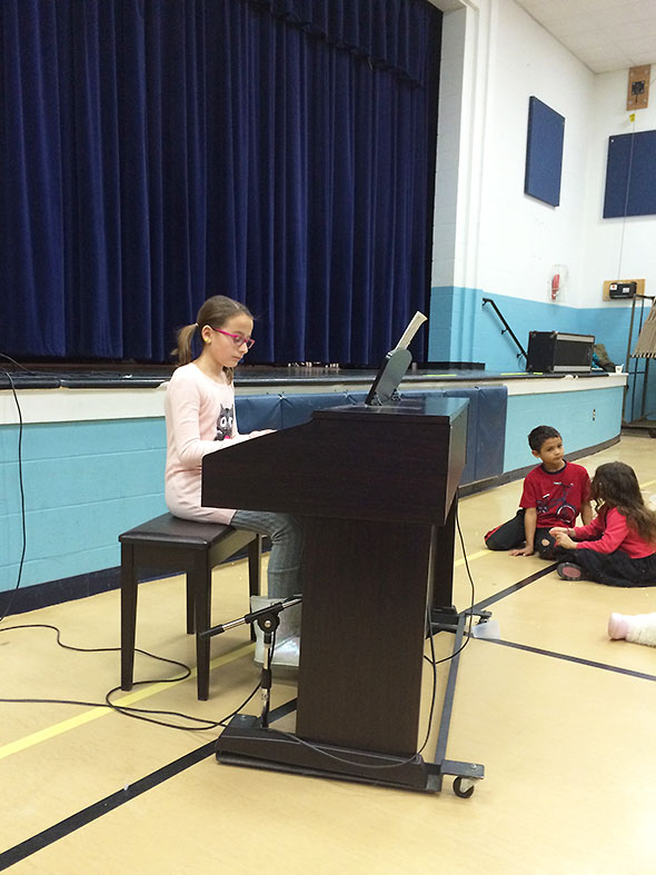 Just a few days later, we were full witness to the blessings of such influence. The Mills Lawn School talent show went into swing Friday 7pm at the school gymnasium. While the audience enjoyed refreshments of freshly popped popcorn and soothing hot chocolate, the children stood up solo, in pairs, and in groups to perform powerful renditions of popular favorites, home-spun originals, and hilarious parodies.