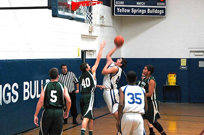 Against Greenon, the Bulldogs, still raw from three early season losses, came out tentative. The teams kept pace with each other, going into the fourth quarter with Greenon ahead 44–42, when junior co-captain Liam Weigand helped turned the tide with an inside sinker and a three pointer off of a throw-in. Isaiah Taylor led Yellow Springs with 17 points, followed closely by Kaner Butler with 16. Weigand had 10 points on the night.