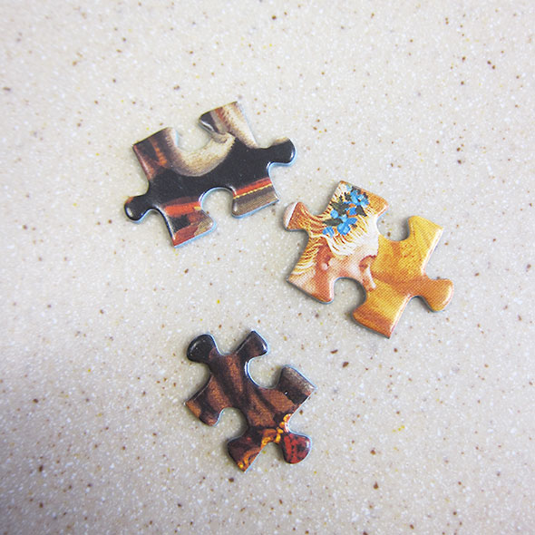 By mid January, fellow puzzlers had found almost all of the edge pieces and assembled the border of the scene. At this point, the specific challenges of the puzzle became clear. First, at least one edge piece was missing perhaps as many as three. Second, the small jigs of the puzzle were subtle in their differences and could easily slip into spots that they didn’t truly belong. I reconstructed the perimeter pieces twice myself before finding the proper fit, only one edge piece left unaccounted for.