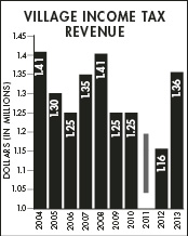 The Village’s annual income tax revenue, provided by the Regional Income Tax Agency, dipped during the recession but showed signs of recovering this year.