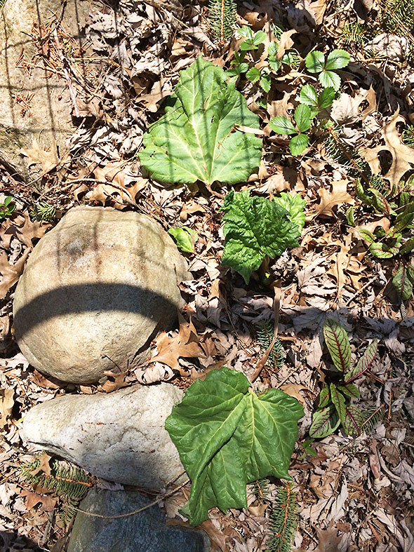 The berry bushes about our grounds are also scarred from the cold. The vibrant top leaves of a currant bush captured in a photograph on Monday afternoon are gone…blackened by frostbite and fallen away. Monday’s robust rhubarb stalks now lay shriveled on the garden floor; virginal leaves of new rhubarb remain tightly clutched, poised just above the grown, and resist just yet the impulse to surge upward.