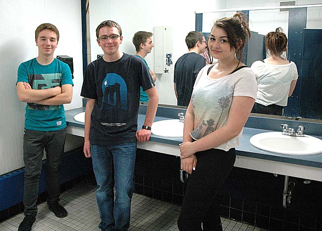 Members Mollye Malone, Cole McNeal-Harding, Lake Miller, David Butcher and Chavez got to work investigating what existed, what kinds of improvements were necessary, and what changes were desirable. With the help of art teacher Elizabeth Simon, they interviewed students and teachers and made a video illustrating the state of the school restrooms, public opinion about them, and ways the school and wider community could make them better.