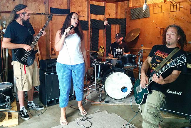 Local rock band Spanish Tony Sanchez is one of 10 local groups performing at the Summer Music Bash on Saturday, July 5, on the John Bryan Community Center lawn. The free festival features mostly local musicians and runs from 11 a.m. to 8 p.m. Members of Spanish Tony Sanchez at a recent practice are, from left, Adam Gueth (bass), Amy Dihrkop (vocals), Jerry Clements (drums) and Bill Sykes (guitar). (Submitted photo)