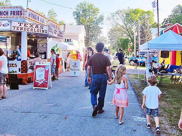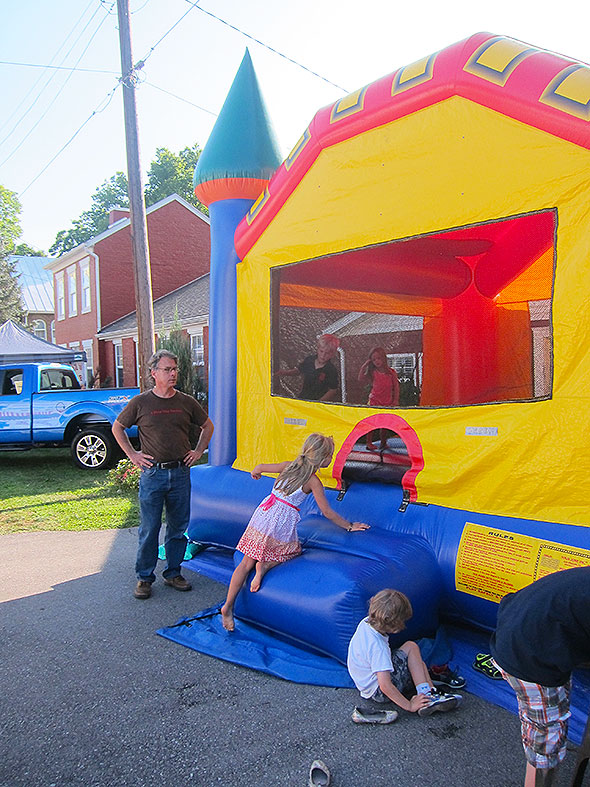 Our son raced about the school house playground until he was ready to topple over. Our daughter paced herself with greater discipline and rounded out her stay rolling a spare at bowling, tapping a golfball into the pocket of a sole-shaped green, and playing a competitive round of oversized horseshoes. For her efforts completing all stations at the children’s tent, she left the craft table with a special prize: a kite adorned with a rather content looking kitten. [The family is off to Gaunt Park to fly the kite as I write.]
