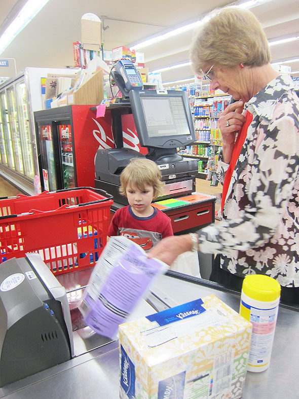 The supply lists for Mills Lawn School earlier posted early this week, so my young man accompanied me about the town as I collect back to school items. First we went to Unfinished Creations, 243 Xenia Avenue, where we conferred with owner Pam Hogarty. Pam collected our stock of pencils, glue sticks, markers, crayons, erasure, and bound notebook and tempted us further with her inventory of stickers, paints, and pencil sharpeners. My son then took an active role at Tom’s Market checking out our remaining school supplies—disinfectant wipes, tissue boxes, and ziplock bags—even so far as scanning items in himself.