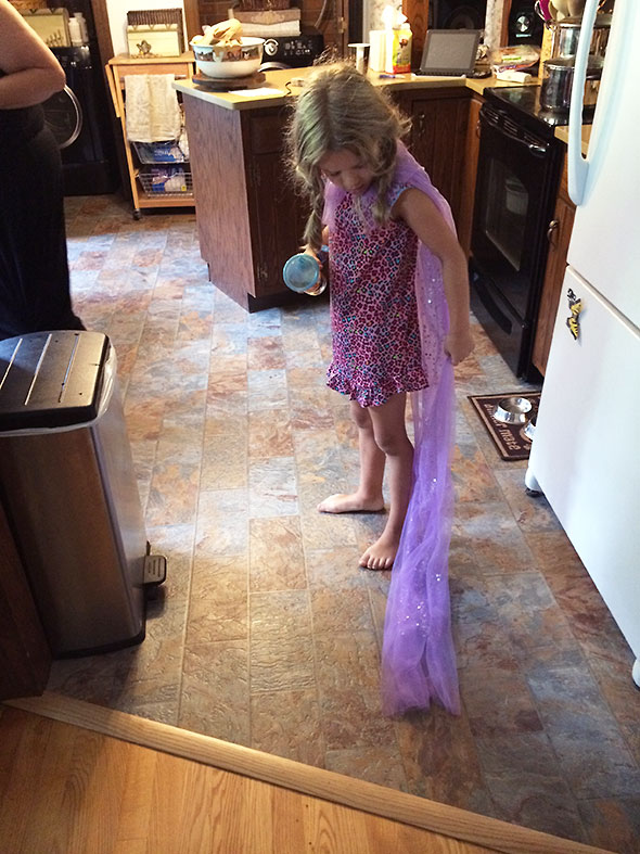 In her absence, our son took over her self appointed chores—such as cleaning Daddy’s car windows—and filled the silence with his own chirping voice. On occasion, he teased us with a full throttle rendering of Queen Elsa’s theme “Let It Go” but mostly he’d croon his personal favorites—Sweet Dreams Are Made of These, Karma Chameleon, and Proud Mary—while playing with his trucks and other toys.