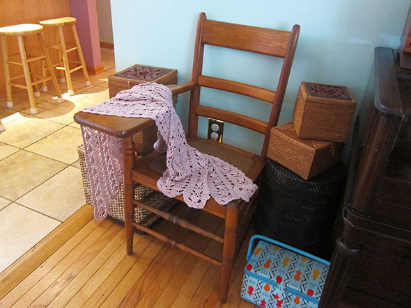 Our daughter was intent on being a fabulous guest. She would play the part with confidence and dress for it too. Along with her favorite dresses, she packed dreamy drapy scarves, a pair of lace fringed gloves, and pink polka dotted sunglasses. One thing that wasn’t packed was her nubby pink afghan. The omission was not intentional. Croqueted in rosette strips by her Auntie Leigh, the afghan serves her in many capacities: a shawl, a head scarf, a picnic blanket, a makeshift purse. It has been her constant companion since birth and a great source of comfort. We discovered its absence just before Columbus Ohio, but she surprised us by agreeing that we had gone too far to turn back and retrieve it. Instead, she and I settled that I should speed the time of their separation repairing its few unraveling cords. They would be reunited again—tested and made whole—in a week.