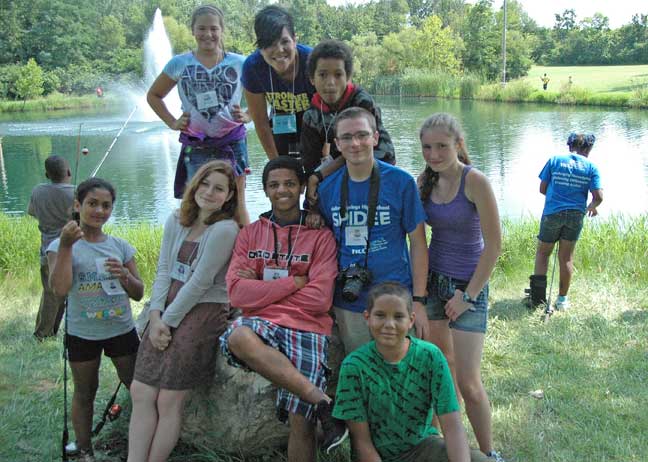 Last Wednesday, July 28, Yellow Springs youth Sam Foster cast his line in the pond behind the Huber Heights Fraternal Order of Police and reeled in a tiny bluegill. His first two days at the “Police and Youth Together” camps with about 30 other urban and suburban youth from the Miami Valley region learning about police and what they do had been insightful. They talked to police about handcuffs, tasers, guns and gun safety. They saw mounted police on horseback, met with a SWAT team, and talked to officers about their foremost mission to help the public and keep people safe. Four Yellow Springs youth attended the camp, and an equal number of older local youth served as counselors.