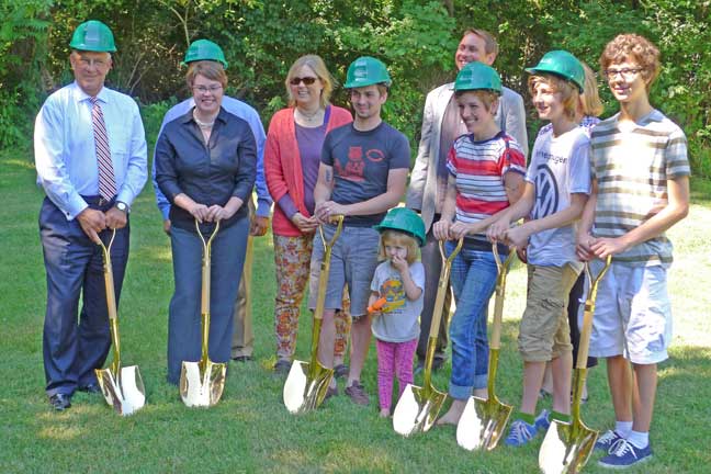 Home, Inc., broke ground on the Village’s first public affordable housing project on Cemetery Street on Friday, Aug. 15, with future homeowners the Wyant family digging in along with project partners and Village Council members.
