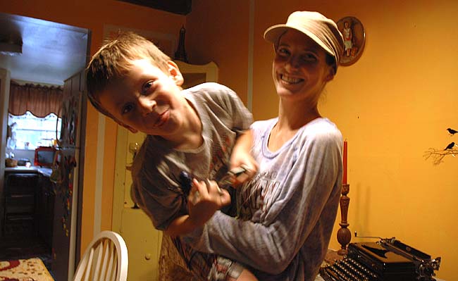 Lindsay Folke, here with her four-year-old son Cooper, was diagnosed with an aggressive form of cervical cancer in June. Peach’s Grill, where Folke works, will host a benefit to raise money for Folke’s medical expenses on Saturday, Sept. 6, with live music from 2 p.m. to 2 a.m. (photo by Megan Bachman)