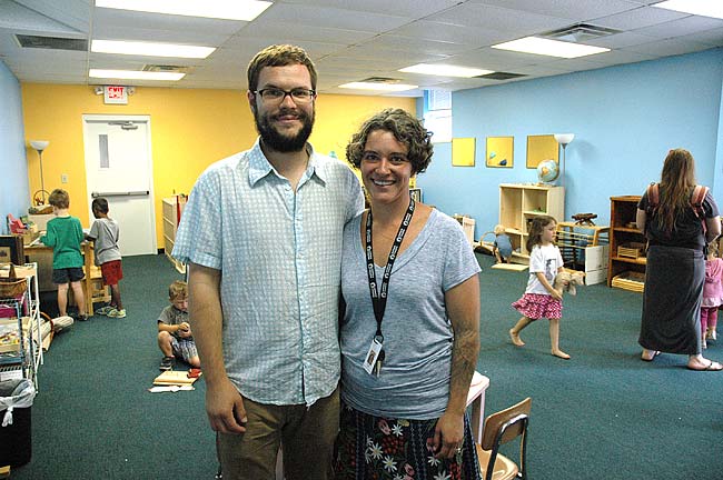 Edward and Melanie Ricart started the Yellow Springs Children’s Montessori Cooperative three years ago, which this fall moved into the Sontag-Fels building at Antioch College. There are 19 students between ages 2 and a half to 6 in the program, which is currently full but open to observations and waiting list additions. (Photo by Megan Bachman)