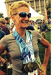 For Hofstra, an IT administrator for a Columbus company, the gold medal wins came from an effort to stretch herself in her favorite sport, biking. Two years ago she took up bike racing, because “I wanted to see how fast I could go” and joined Team Dayton. With the help of a Team Dayton coach, she trains 8 to 12 hours a week, and this summer spent most weekends with the team at bike races in the state.