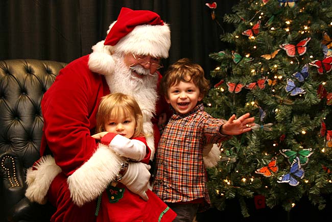 About 30 children, including Sophia and Sam Burns, above, turned out last Saturday for visits with Santa, Mrs. Claus and the elves at the Glen Helen Building, part of the day-long Holiday Fest. Along with Santa, a popular attraction was the free carriage rides provided by draft horses Luke and Leia of Horse-N-Around Farm in Vandalia.
