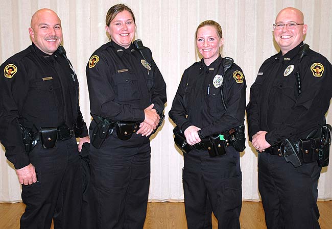 The four new officers join Interim Chief Dave Hale, two sergeants, seven full-time patrol officers and four part-time patrol officers for a fully staffed department, according to Hale this week.