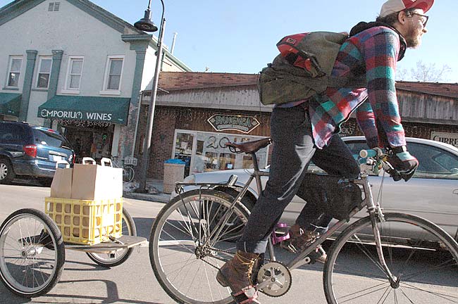 Corey Elbin launched Yellow Springs Delivery Service this month and is already pedaling around town rescuing those without transportation, time or both to run their errand.