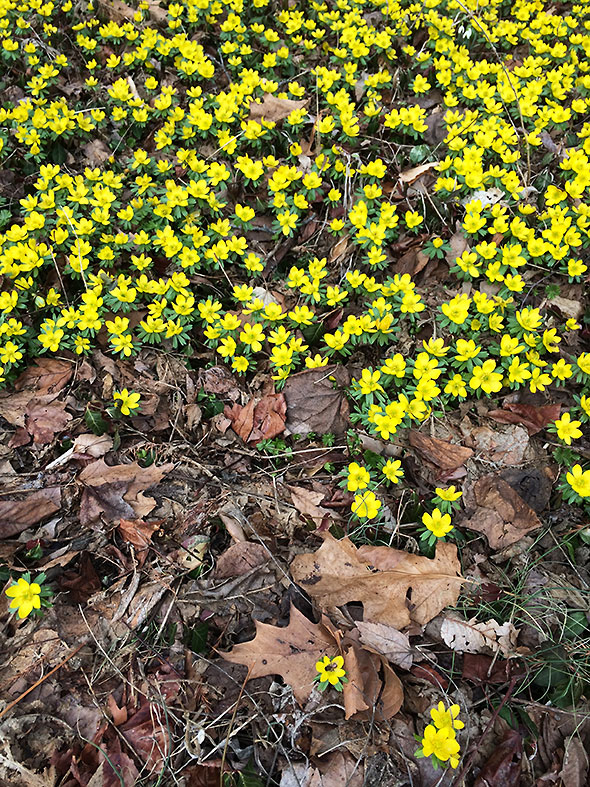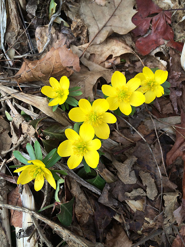 This week put considerable distance between us and the bitter cold that we endured throughout February. The straw blond fields surrounding Yellow Spring have started taking on notes of green as the grass awakens. The front patch of a neighbor’s lawn suddenly erupted in buttercup yellow as winter aconite broke through the leather-brown leaf litter. Bees made themselves busy and their presence gave me confidence that the hard winter had finally let go its relentless grip.