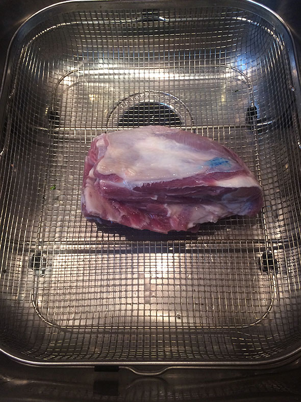 I showed the packages to my husband, and—inspired—he selected a shoulder from the freezer to prepare. His choice of meat was interesting: not chicken, or pork, or beef, or even lamb but goat. We’d recently worked with Moonshadow Farm and Old Town Butcher Shop to acquire the cuts. This meal was our first from that acquisition. Upon selecting the meat, Jeremy had other choices to make: namely, which oil and the vinegar. After tearing the pantry apart, he came up short on both olive oil and white wine vinegar. My husband quickly embraced a new cooking philosophy which he summarized as “go with the good we’ve got.” The good turned out to be almond oil and Bragg’s apple cider vinegar supplemented with a small amount of white wine vinegar.
