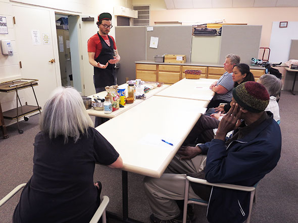 Chef Corey was making tamales, a traditional Mesoamerican dish made of a corn-based dough. Tamales are cooked by steaming the corn-husk-wrapped meal in a steamer, or tamalera. Corey had rolled up a dozen tamales the night before and set that batch to steam for an hour in the center’s galley kitchen. We would sample them soon enough, after we had learned to assemble them for ourselves.
