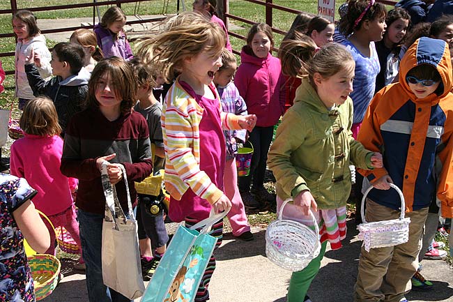 About 100 youth gathered at Gaunt Park Saturday afternoon for the annual community Easter egg hunt, sponsored by Central Chapel A.M.E. Church, whose Youth Group stuffed candy into over 1,500 eggs. Caroline Tucker, center, almost levitated with excitement. The frenzied hunt was over in a flash, but those who gathered more eggs than they needed shared eggs with the latecomers. The Easter bunny also hopped by to spread more sugar-filled joy. See more photos on page 6, as well as in color, online at ysnews.com.