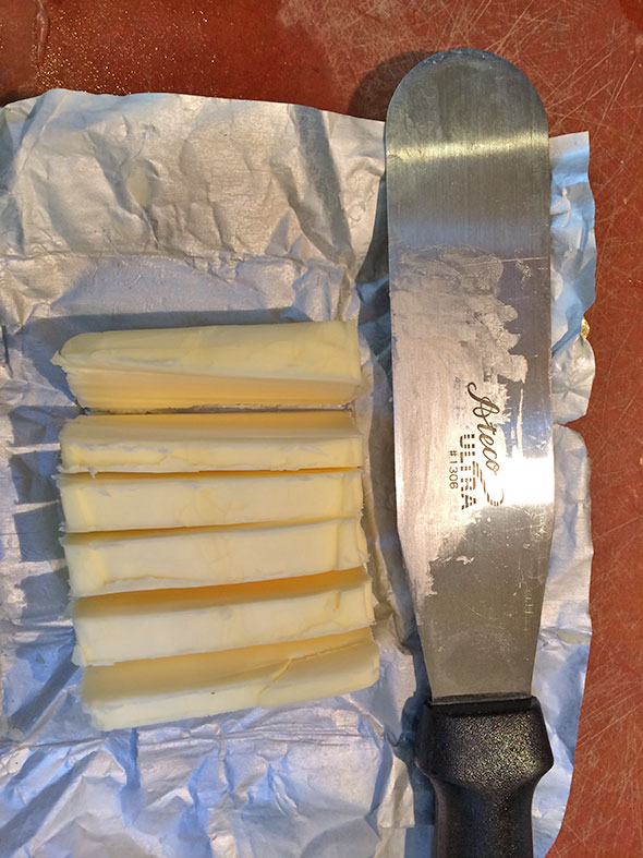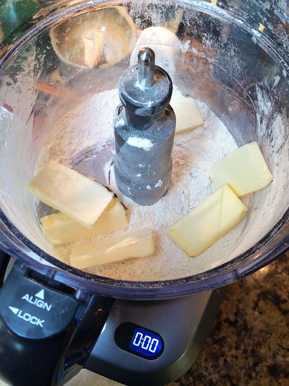 I wake Tuesday morning and, before breakfast, make three batches of pie dough…two rounds for bottom crusts and enough leftover, perhaps, to form a lattice over both pies. While Jeremy slices the berries and rhubarb, I slice 4 ounce cubes of butter into a dry mixture of flour, sugar, and salt. I pulse the mixture in our food processor for six seconds listening to the butter collide against the processor’s mixing chamber…the sound changing swiftly from hefty pads to dainty plinks.