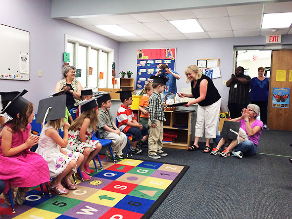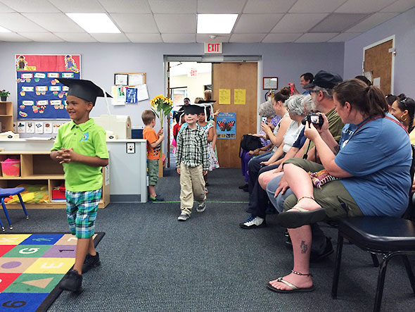 Wednesday afternoon this past week, our family arrived at Friends for a commencement ceremony. Sixteen children, in a room packed with ken, celebrated their preschool graduation and their anticipation of entering kindergarten at the start of the next school year. The children marched into the classroom to Pomp and Circumstance gamely wearing graduation caps made of sturdy black poster board and long tassels of white yarn. Our son wore his cap low on his brow… covering his eyebrows and perhaps a sly secret or two.