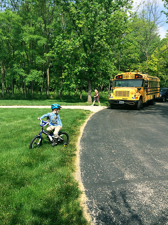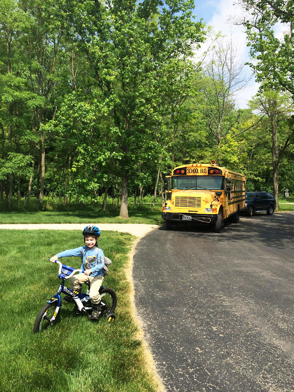 When I woke our son on Thursday, I asked him again “Bike or Bus?” He answered, “Bike!” smartly and hopped over his sister’s bed on his way to breakfast and a new day. My husband rode with him to preschool one last time and helped him clear out a cubby filled with art work and that spare set of clothes that our son is almost certainly about to grow out of.