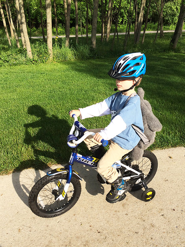 Well, one threshold he’s more than ready to clear is the advent of summer. We are on the cusp of a new beginning, the next stage and challenge of a young learner’s life. Ah, but, first before Kindergarten there’s something very special to fit in…a summer filled with freewheeling bike trips and park rides and the company of those who more than anything else love to see you smile.