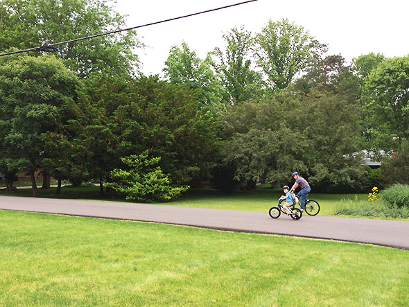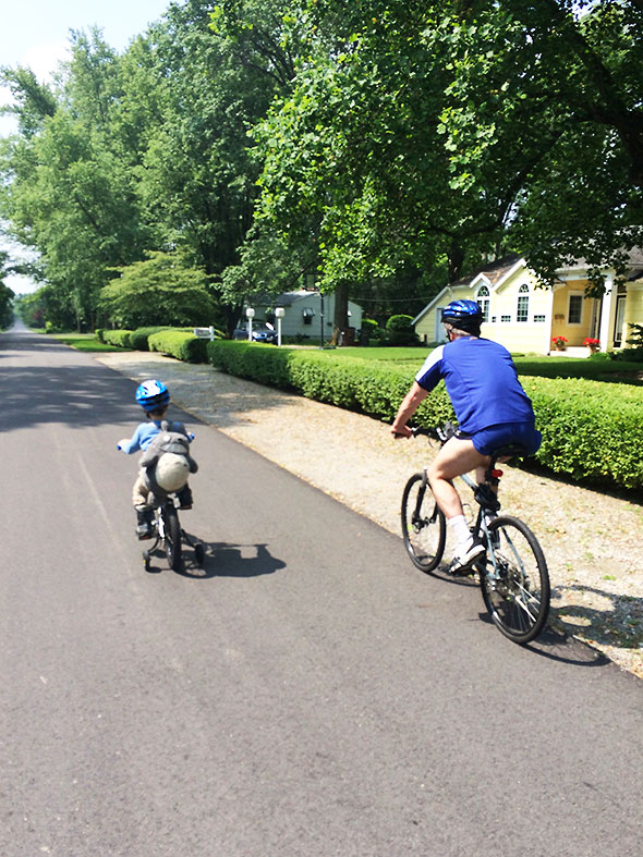 And so began a trend. With the streak of good weather that mornings offered in May, our son had little to frustrate his springtime fascination. Eager for the morning exercise, he’d strap on his Batman boots, blue helmet, and Totoro backpack and off he’d ride… his father cast as sidekick.