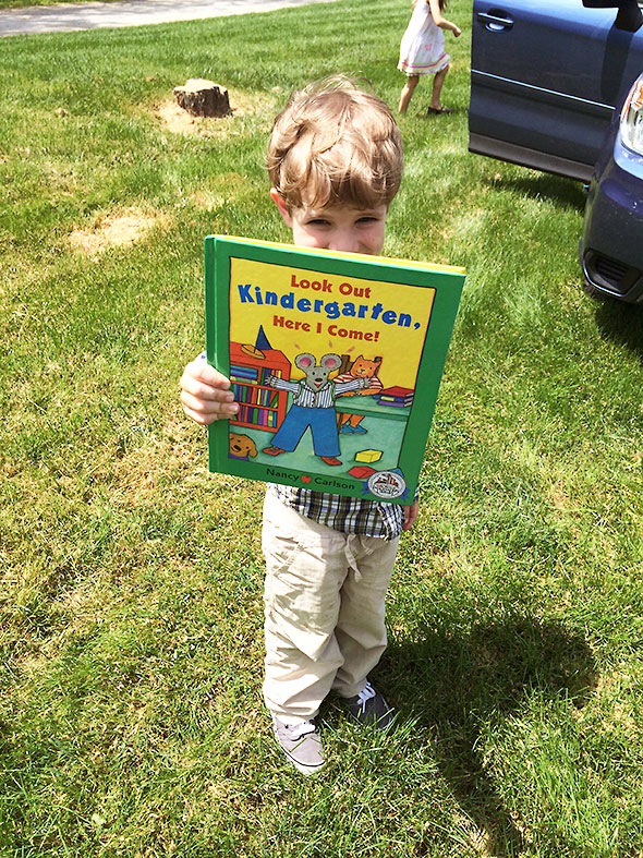 After the teachers handed the students their graduation certificates, we shared cups of punch, a slab of cake, and snacks before the families begin to part ways. Outside, the day was bright and lush with a restless wind catching the freshly sprung leaves. Still sporting his graduation cap, my son let me examine his diploma while he proudly spelled his name out. He rescued a book from the car that he received in the mail just before the ceremony. It was a hardcover book, a final gift from the Dolly Pardon Imagination Library, a service sponsored by the Greene County Public Library for children under the age of five. The book has a mouse on the cover; its arms are outstretch and it shouts “Look out, Kindergarten, here I come!”