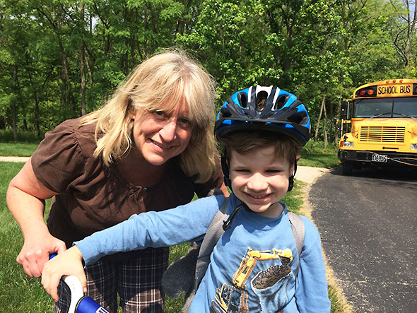 When the bus arrives to take the other children home, I join my men for the bike ride home. His teacher Janice Kumbusky gives him one last hug, and bus driver Mary wishes him a fun filled summer. We express our heartfelt thanks to one and all, thinking back over two school years, relieved and excited over the progress our young man has made. He arrived at preschool shy and solitary, often unwilling to speak up or join in. Now he crosses thresholds that he once refused, taming anxiousness and sometimes overwhelming excitement, as he works through that stage of awkwardness commonly known as childhood.