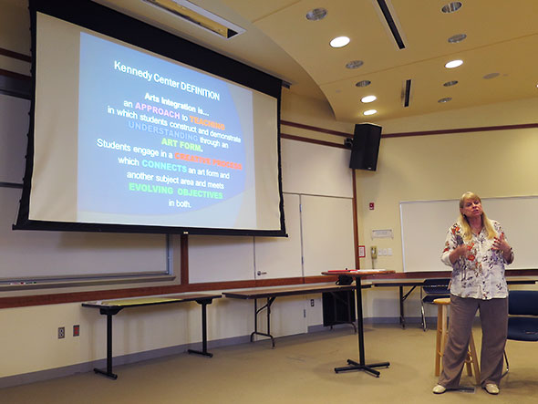 When I pick up my son from preschool, he ticks off the complete cycle of his adventure from Miss Mary driving them to his sister’s school on the bus, his spin around her playground, the kids of the kindergarden classroom. The monument of the event is clearly not lost on him, and his excitement is not lost on me.At home, we wait for the high school to let out and my son’s babysitter to arrive. I then zoom up to Barbara Deer Kuss Science Center of Wittenberg University for a workshop on arts integration in classroom curriculum. The workshop is part of a Partners in Education program developed by the John F. Kennedy Center for the Performing Arts and sponsored locally by the Springfield Museum of Art, Wittenberg University, the Clark State Performing Arts Center, and area schools.
