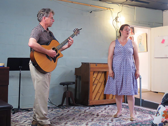 Saturday night’s performance is the group’s most ambitious yet. All together—singers Tamsin Trewlaney-Cassity, Jennifer Gilchrist, Lori Askeland, Dianne Foubert, Flo Lorenz, Kathy Stockwell, Fred Bartenstein, Mike Zwart, David Sietz, Mark Munger, Ron Siemer, Ned Hune, and myself—we have polished two established favorites, Calling My Children Home and Keep Your Lamps, and added four folk tunes to contribute to the evening’s repertoire. Gilchrist and Askeland have each prepared a set of standards, and Gilchrist anchors the evening with a flourishing classical piece for piano and soprano voice. My husband Jeremy will joins us also to add a guitar line to the folk song “One Voice” written by Ruth Moody; he and I also promised to perform an opening song to warm up the crowd.