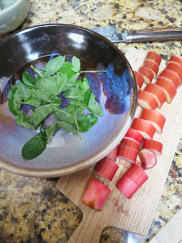 Inside the house, the flannel sheets which overstayed their welcome have been packed off and been replaced by powder blue linen and a herd of painted horses whose polished coats are smooth and cool against the cheek. Ceiling fans turn overhead churning a light sustained breeze. A bouquet of fresh mint and lemon balm adorn the kitchen table, and harvested stalks of rhubarb are being prepped to top a breakfast of granola, yogurt, and imported berries.