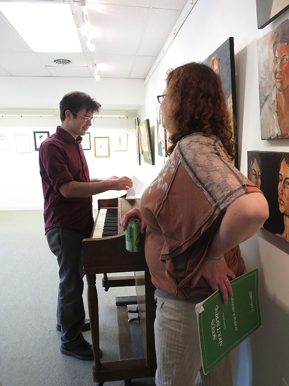 We succeed in surprising the crowd, and Lauper’s anthem to girl power proves a most fitting opening to an evening featuring the spirited vocals of Gilchrist and Askeland. Gilchrist takes to stage next. John MacQueen accompanies her on guitar, and they soon have the crowd singing The Beatles’ Here Comes the Sun in three part harmony. After two engaging songs from Gilchrist, Askeland brings Mark DeLozier with her to the stage. He lays the council’s miniature piano as Askeland wins the crowd with her teasing humor and full command of the Rodgers and Hammerstein classic It Might As Well Be Spring and Fats Wallers’ playful Ain’t Misbehaving.