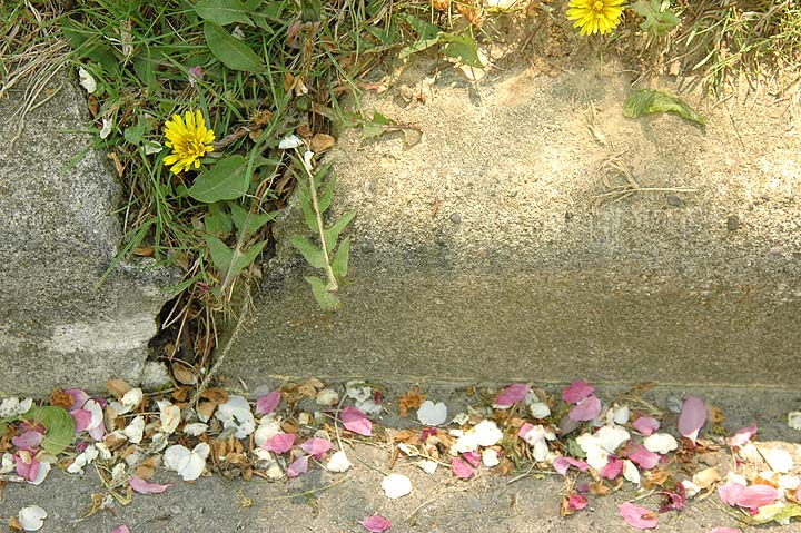 Recent harsh winds and driving rains have all but eliminated the brief burst of color that is the signature of Spring. While most of the colors tend towards the timid pinks, whites and yellows, there are also the audacious shocking reds and and oranges, as well as the usually smaller but no less insistent blues, purples and violets.