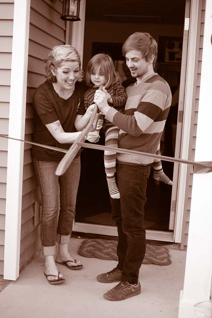 More than 60 people attended the Yellow Springs Home, Inc. ribbon cutting celebration of the first home constructed as part of the Cemetery Street project, featuring the five person Wyant home buyer family — shown above are Erica and Caleb and their daughter, Rudy. The Cemetery Street project is the first of four units to be built through an historic partnership with the Village of Yellow Springs. More than $60,000 went into making the home affordable, provided by the Morgan Family Foundation, FHLBank of Cincinnati, Finance Fund, Bike & Build Inc., Vectren Foundation, and Huntington Bank. The second home in the project is slated to be built this year for a local special needs family of four.