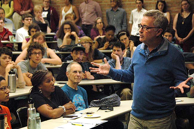 At a meeting attended by several hundred in the Antioch College community on Tuesday, May 5, College President Mark Roosevelt announced that he will no longer lead the college when his five-year contract expires at the end of 2015.
