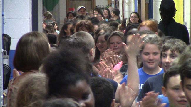 Each year, the sixth grade class must, as a final farewell and collective ousting, run a gamut of shouting and high-fiving underclassmates lining the halls they have trodden for the last six years.