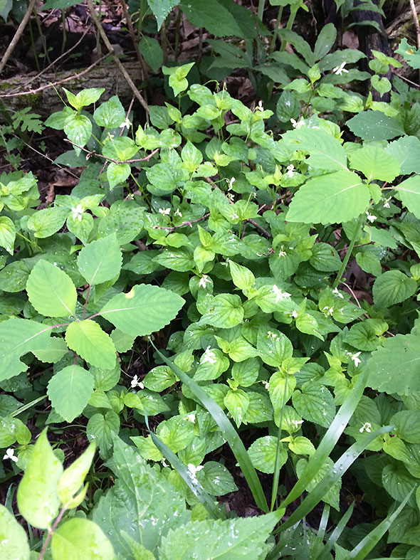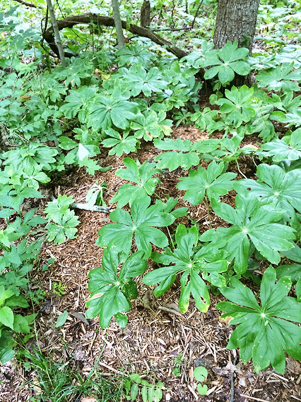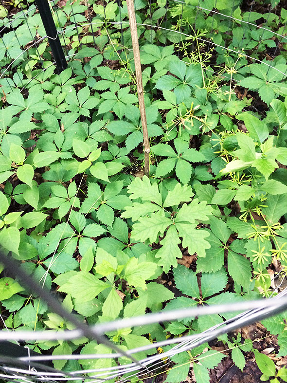We walked quietly alive to the exotic calls of birds. Heidi Hoover and instruction aide Jane Jako pointed out the stands of flora: wild Ginger and Geranium, hydrangea and water flowers, may apples and poison ivy. We passed several cages and noted the elegant curving line of leaves on the white oak saplings within. Recently planted as part of the ongoing restoration of the forested glen, each white oak stood less than a foot high and just hovering over creeping ivy. A uncommon native, the most well known white oak marks the memorial of Helen Birch Bartlett, the glen’s namesake and longtime resident.