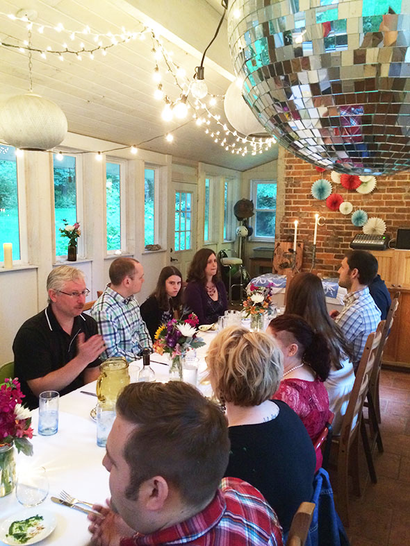 In a state of deep satisfaction, no one was in a hurry to hurry off. The host family produced two guitars and several of us stepped forward to play. Our guests from Columbus surprised us as much as we surprised them with two full throated songs and flashing guitar and soon had us all singing along. We laughed and talked and sang in the glow of a meal, a home, a company notable as much for its reverent quirkiness as for its high held quality.