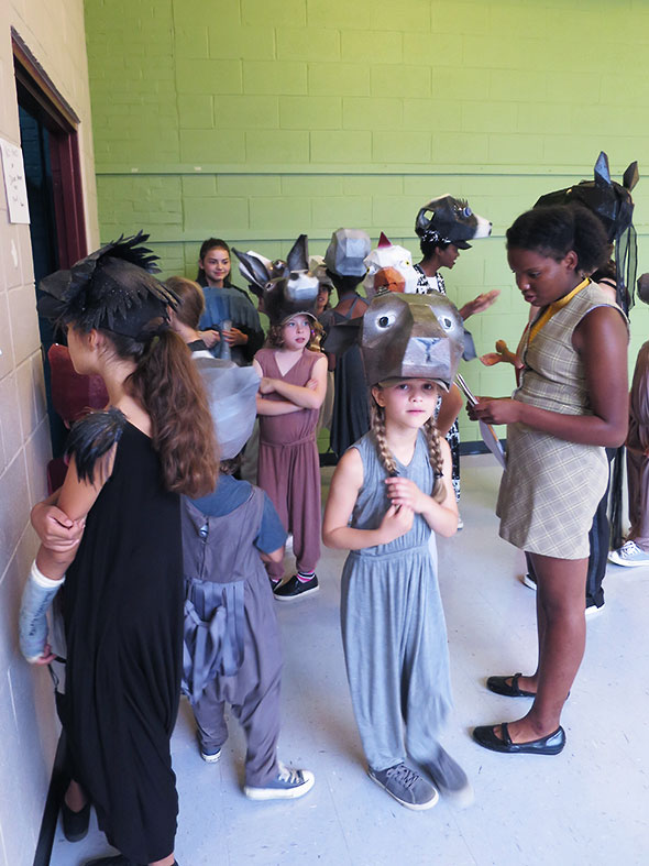 My daughter auditioned for the play in May and joined the cast as one of its youngest members. In the first act, she plays a young goat unsettled at the strange going ons along her other barnyard friends. In the second act, she switches roles and plays an eager patron of the local farmers market and a protester of the threatened development…someone who resembled my thirty year old self but dressed in overalls.