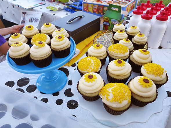 Donations collected during the second act of The Farm benefit the Tecumseh Land Trust. You can donate to YSKP at the box office and by partaking of the concession stands at intermission. Hold off on dinner before you arrive for the show as Sunrise Cafe is offering chicken dinner and a bean plate in addition to slices of pie. Also available at the main concession stand, Three Leee Cupcakery has lovely cupcakes decorated with sunflowers.