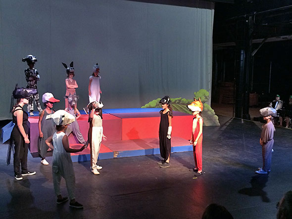 Thursday night, the Yellow Springs Kids Playhouse production of The Farm opened under clear skies and the weight of high expectation. A musical colorfully cast with 35 precocious kids costumed in reconstructed recyclables is—according to one of YSKP’s tongue twisters—“a thing that’s simply hard to say and harder still to do”.
