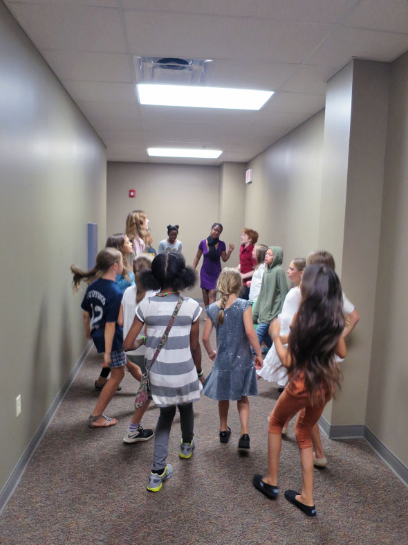 In preparation of eight performances—four this weekend and another four next weekend starting Thursday, Friday, Saturday, and Sunday 7:30pm—the production has been building at a fine cadence “a ratata ratata ratata tat” first in rehearsal at Antioch Midwest University and then full length production within the theatre spaces of Antioch College.
