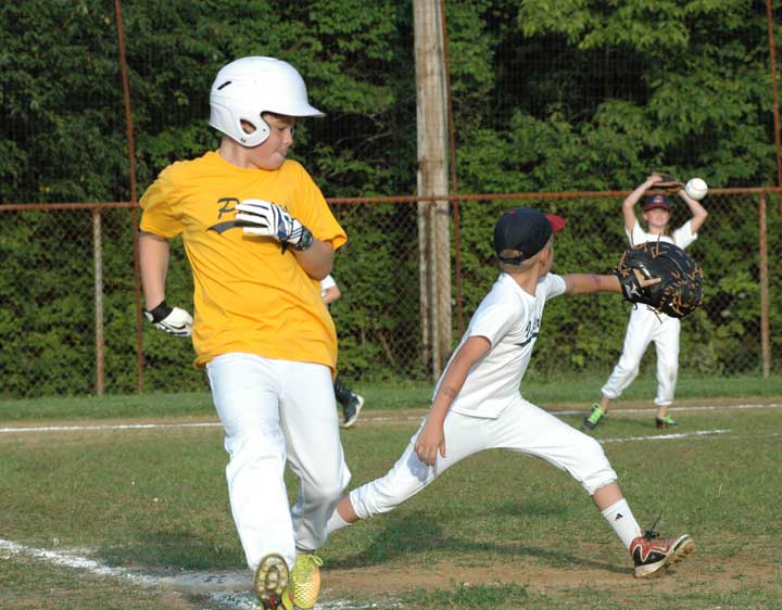 The Indians met the Tom’s Market Pirates on Thursday, July 16, and came away with a 7–3 win. They led the entire game after going up 3–0 in the first inning. Krishan Miller’s left-field triple knocked in Isaac Grushon and Lucas Dunn, who had both singled. Miller then scored on Brother Sam’s RBI single. The Indians added another run in the second when Brady Baker opened with a single and then crossed the plate on Hazen VanMeter’s RBI base hit. Both team’s defenses then stiffened to hold each other scoreless until the final inning, when Ava Schell’s double to left knocked in Sam Miller for the Indians. Schell and Jaymon Reinscheld then both scored when Brady Baker reached base on a fielder’s choice. The Tom’s Market Pirates mounted a rally in the bottom of the fifth that saw Jason Knemeyer score on an RBI single by Zoe Hamilton, who then scored, along with Jason Knemeyer, on Marissa Goodman’s base hit. Ava Schell snagged Teddy Hamilton’s two out fly ball to seal the win. Goodman and Knemeyer both went 2–2 at the plate with Goodman adding two RBIs.